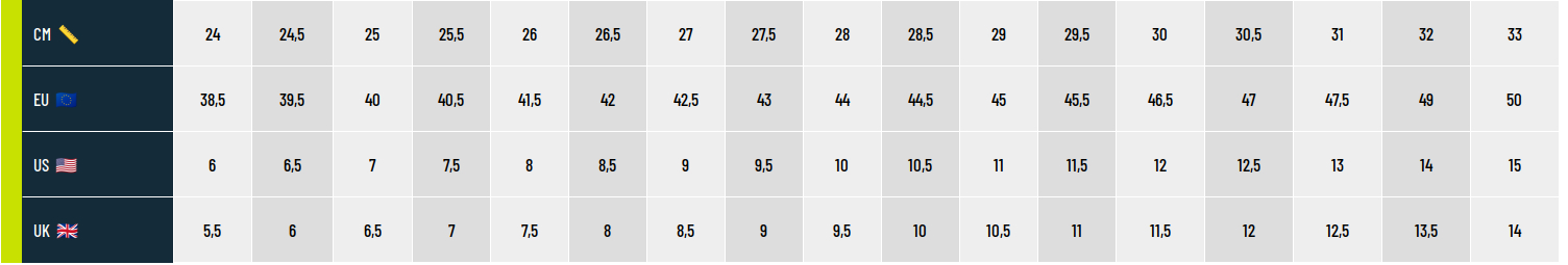 La suela con tacos y 6 clavos extraíbles te asegura una adherencia infalible y una excelente tracción en pistas secas y mojadas.