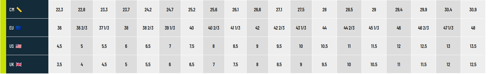 La suela exterior Vibram® Fell Running ofrece una excelente tracción. Duradera, asegura una excelente adherencia.