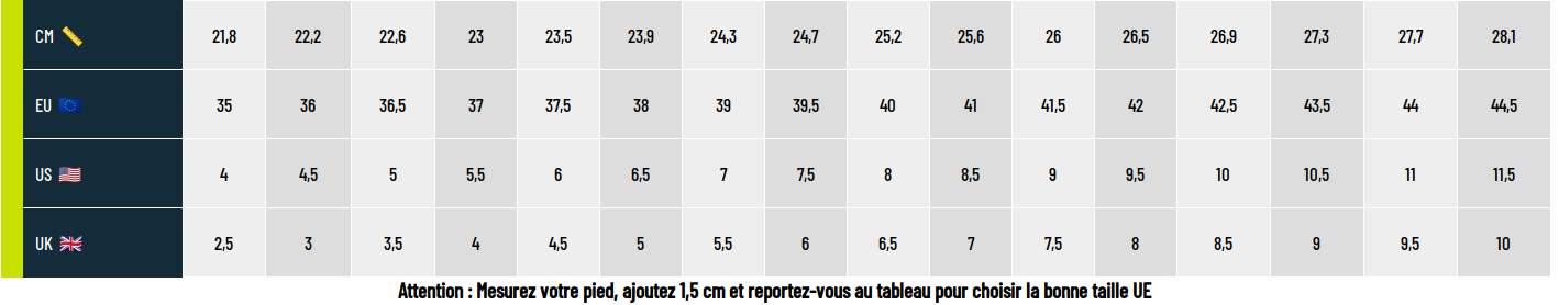 Esta suela exterior garantiza una excelente adherencia en terrenos accidentados, secos o mojados. Los tacos bidireccionales permiten una aceleración rápida y un frenado reactivo.