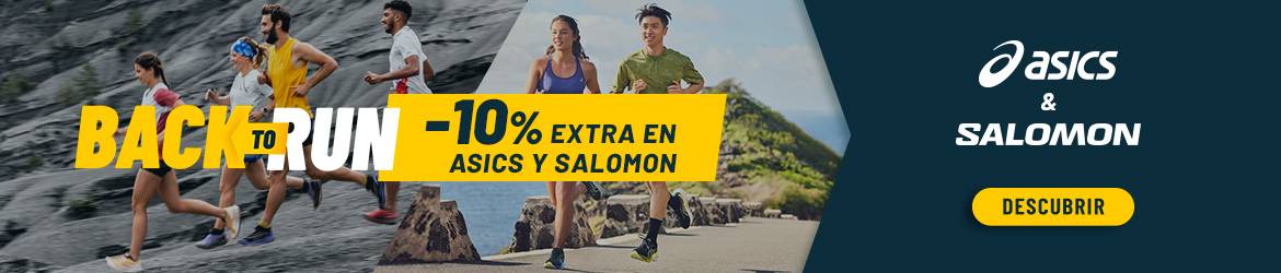 Aprovecha nuestras ofertas Back to Run para beneficiarte de un 10% de descuento extra en una selección de zapatillas y ropa Salomon y Asics.