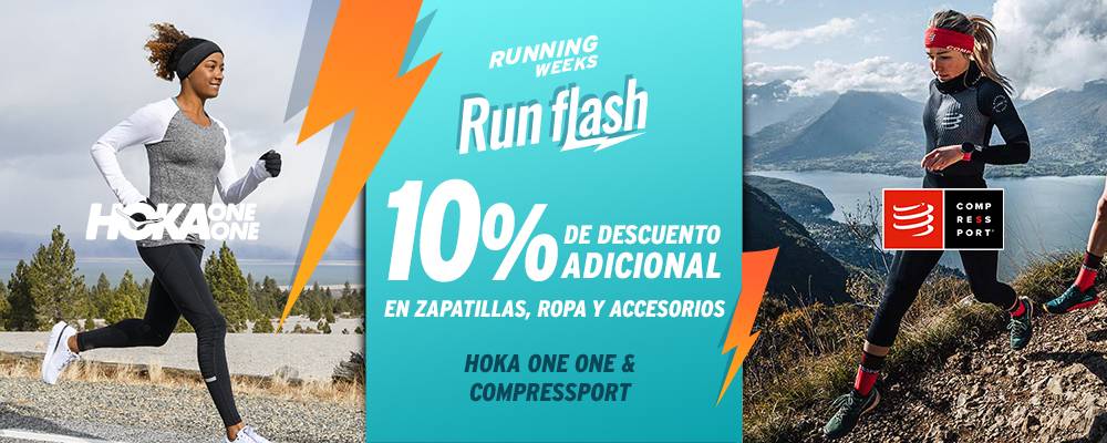 Disfruta de un descuento del 10% en los productos de Hoka One One y Compressport. La reducción se aplica a todos los artículos de dichas marcas*.